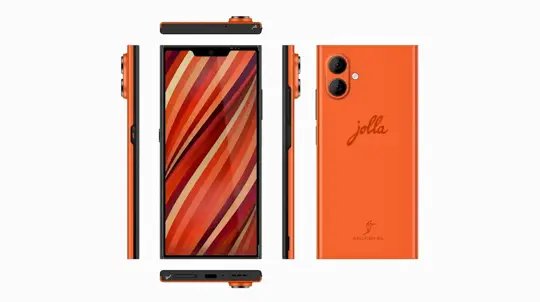 Jolla Phone on SailfishOS: Android app support, 5G, microSD, privacy switch, and a removable battery. Preorders pass 2,500; price from €549. No Google tie-ins.