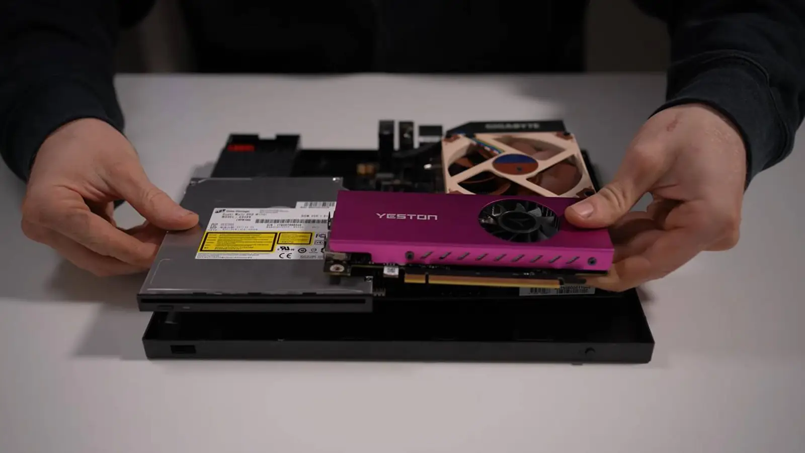 Per montare i componenti, PhasedTech ha utilizzato staffe personalizzate e un riser PCIe a quattro corsie, un compromesso che non ha impattato le prestazioni della GPU scelta. In giochi come Counter-Strike 2 e Valorant, il sistema raggiunge fino a 200 FPS in Full HD con impostazioni medie, con temperature sotto carico che arrivano intorno agli 80 gradi Celsius. Non si tratta di un PC di punta, ma è un esempio impressionante di come fondere l'estetica di una console con la potenza di calcolo di un desktop in un unico chassis.