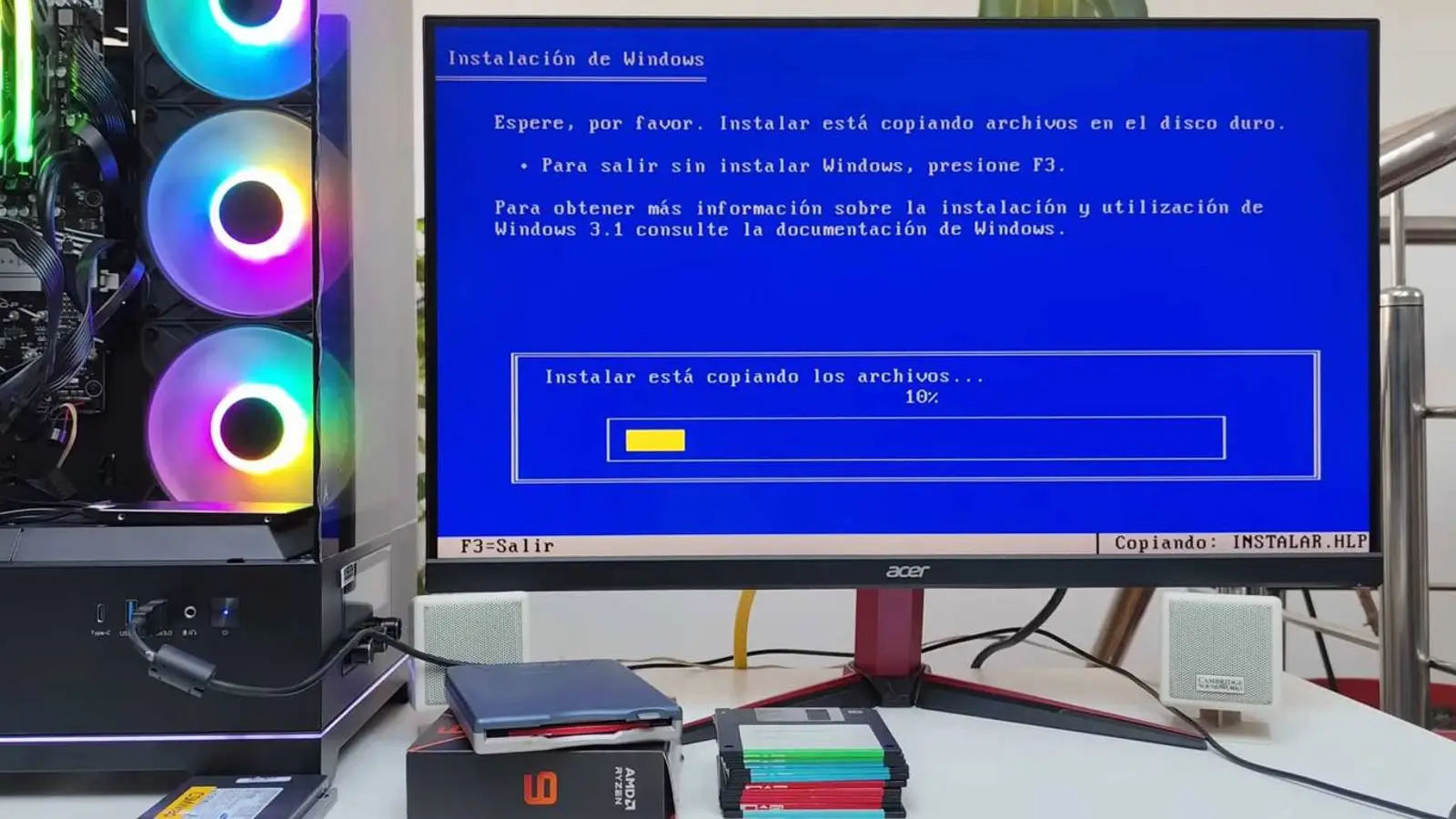 Windows 3.1X uruchomiony na nowoczesnym komputerze z Ryzen 9 i RTX 5060 Ti
