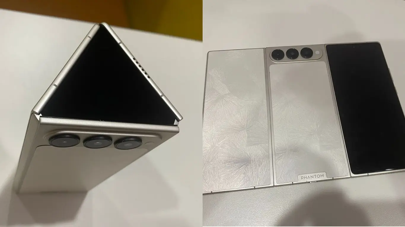 В соцсети X появились живые изображения нового тройного складного смартфона Phantom Ultimate G Fold от компании Transsion, опубликованные инсайдером Коннором Джьюисом. Новинка отличается от других моделей своей уникальной C-образной схемой складывания, в отличие от Z-образного реализации в Huawei Mate XT.