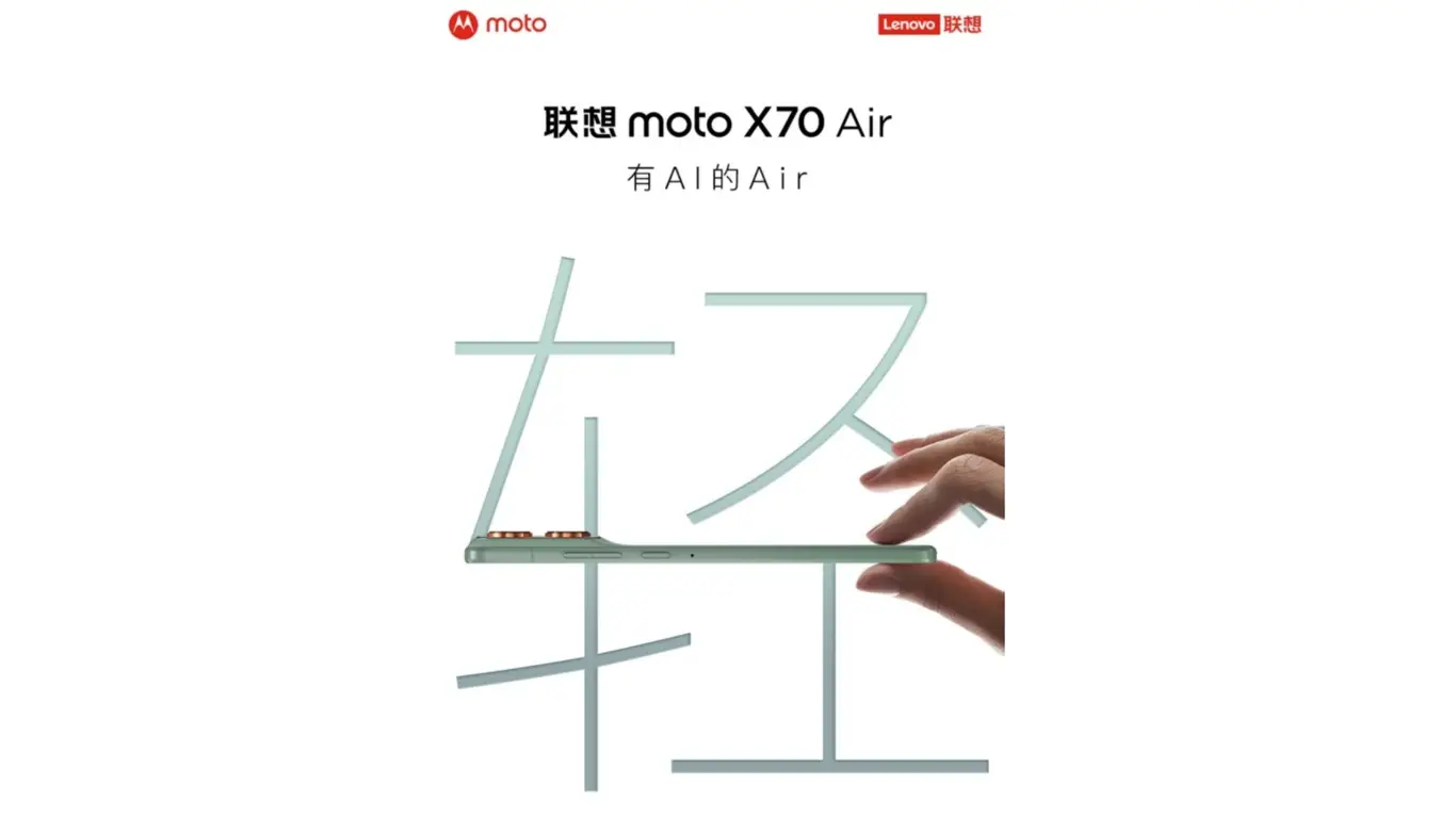Судя по постеру, Moto X70 Air будет позиционироваться как ультратонкий и лёгкий смартфон с акцентом на искусственный интеллект. На изображении видна правая грань устройства с кнопками регулировки громкости и питания. На задней панели можно разглядеть минимум два модуля камеры, однако подробные характеристики пока остаются в секрете.