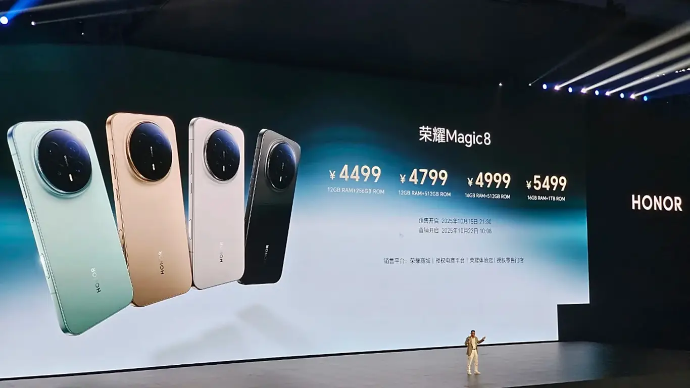 Стоимость Honor Magic 8 в Китае составит 4 499 юаней за 12/256 Гб, 4 799 юаней за 12/512 Гб, 4 999 юаней за 16/512 Гб и 5 499 юаней за 16Гб/1Тб.