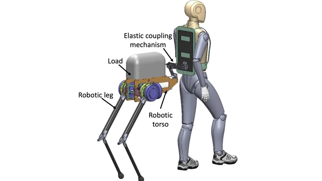 В отличие от традиционных экзоскелетов, которые работают параллельно с ногами человека и обеспечивают относительно скромное снижение энергозатрат — около 10% по сравнению с обычным рюкзаком, — новая система использует иной подход. Робот не жёстко связан с ногами, а функционирует как отдельная «пара конечностей», соединённая с пользователем через специальный эластичный интерфейс на спине. Такая конфигурация формирует гибридную четырёхногую систему, где человек отвечает за навигацию и принятие решений, а робот берёт на себя перенос веса и создаёт горизонтальную тягу.