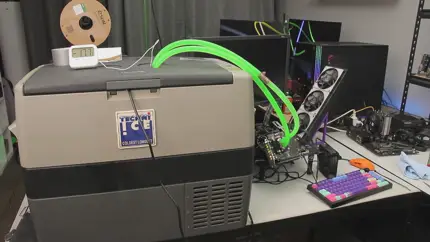 Хакер разогнал GeForce RTX 5050 с помощью туристического морозильника, добившись прироста производительности на 23%.