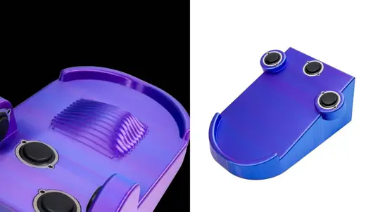 Gövde PLA ile 3B baskıdan üretilmiş ve ayrı bir taban plakasına oturuyor; büyük, 25 mm’lik ABS düğmeler geniş bir hedef alanı sunuyor. Modele göre değişmekle birlikte ağırlık yaklaşık 1 kg ve bu da oyun sırasında zeminde kaymayı azaltmaya yardımcı oluyor.